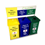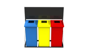 The Recycling Station has a custom designed frame with additional branding opportunities. Comes with a loose fitting or hinged lid. Ideal for recycling or general waste. Various colours available depending on needs and requirements. Can be made into a set with different colours. Recycling stickers also available. Fits a standard black Bag.