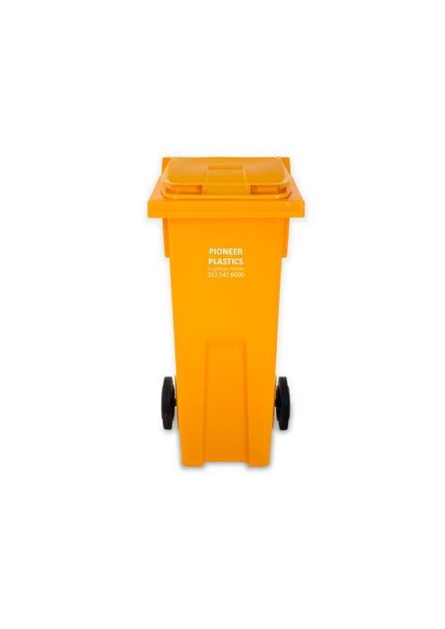 The 120 litre bin is designed for industrial, household and hospitality use. The bin features a specially designed rim flange for operational reliability, and is highly resistant to the effects of continuous mechanical handling. The design is shock-absorbent, resistant to chemical attack and will withstand the extreme and frequent temperature variations experienced in South Africa. The rubber wheels minimize noise pollution and provide easy manoeuvrability.
