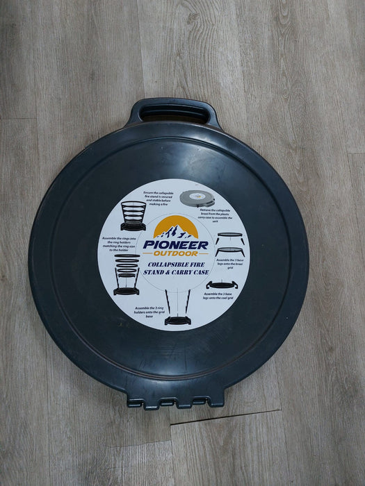 The Pioneer Camp Fire Stand is an updated first stand consisting of removable rings and legs folding into a small and conveniently transportable set.