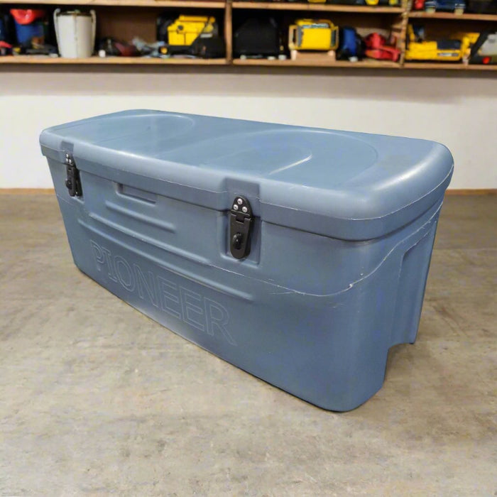 The Pioneer Bakkie Box is the ideal tool box to store tools, groceries, clothes and other items when on holiday, or even while working on site. The box has a hinged lid with 2 hasp and staples to ensure that the box locked securely. The lid has 2 indented seats allowing for someone to sit on the seat at the back of the vehicle.