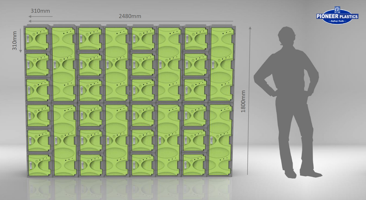 The Pioneer Plastics Lockers are corrosion resistant and a great alternative to the rusting metal and wire cage lockers.