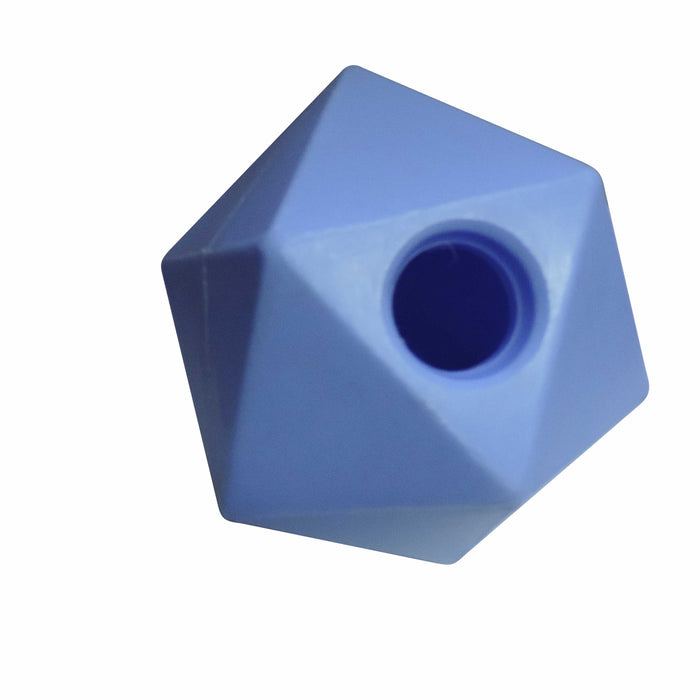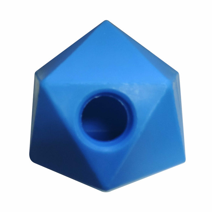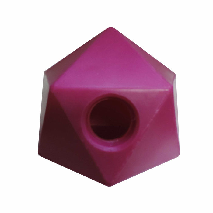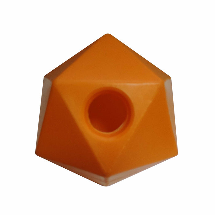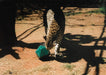 "Designed to be used to stimulate the mind of animals in zoo’s and captivity. Food is placed in the ball, and the animal plays with the ball until the food falls out of the hole in one side of the odd shaped ball"